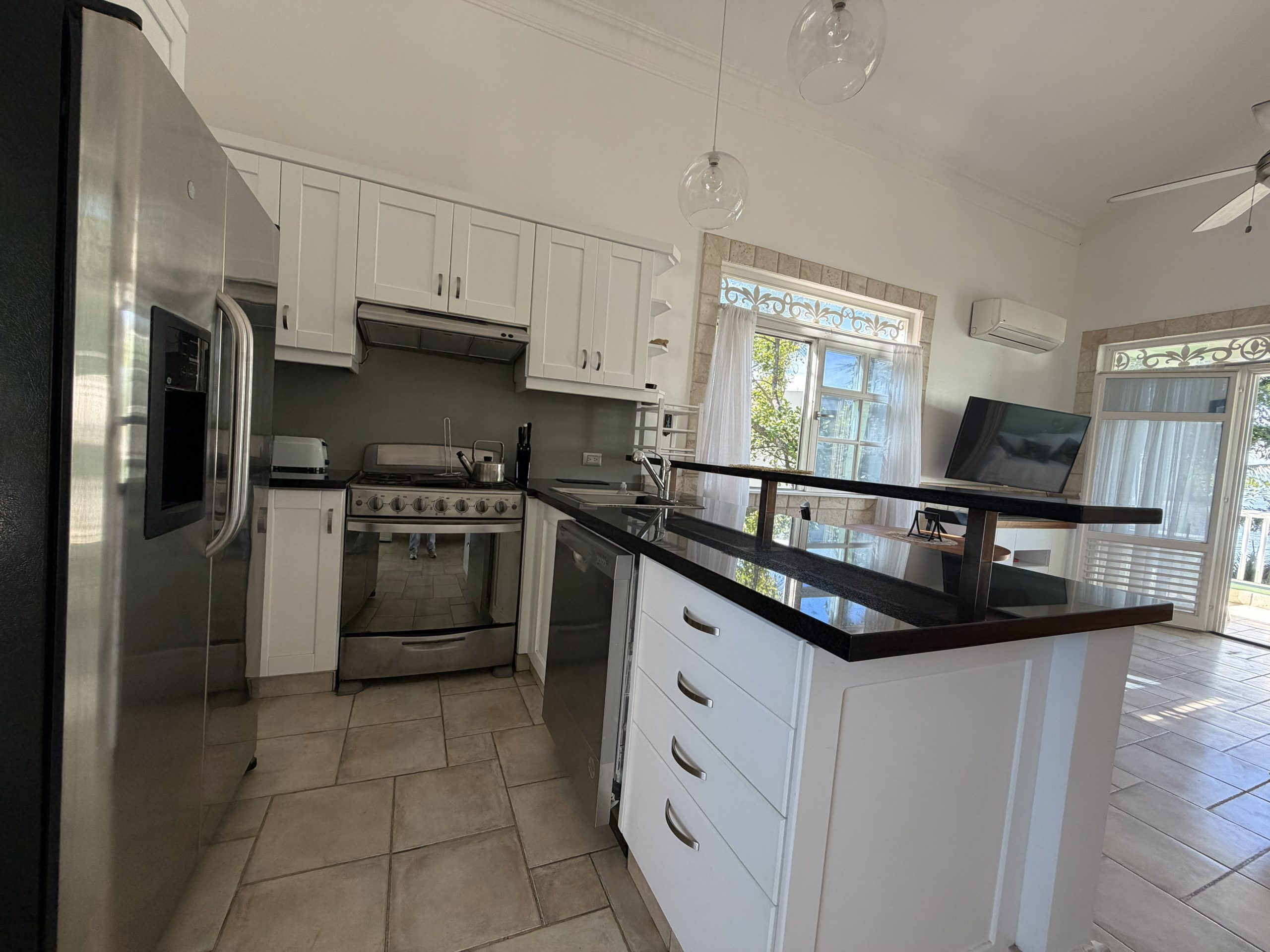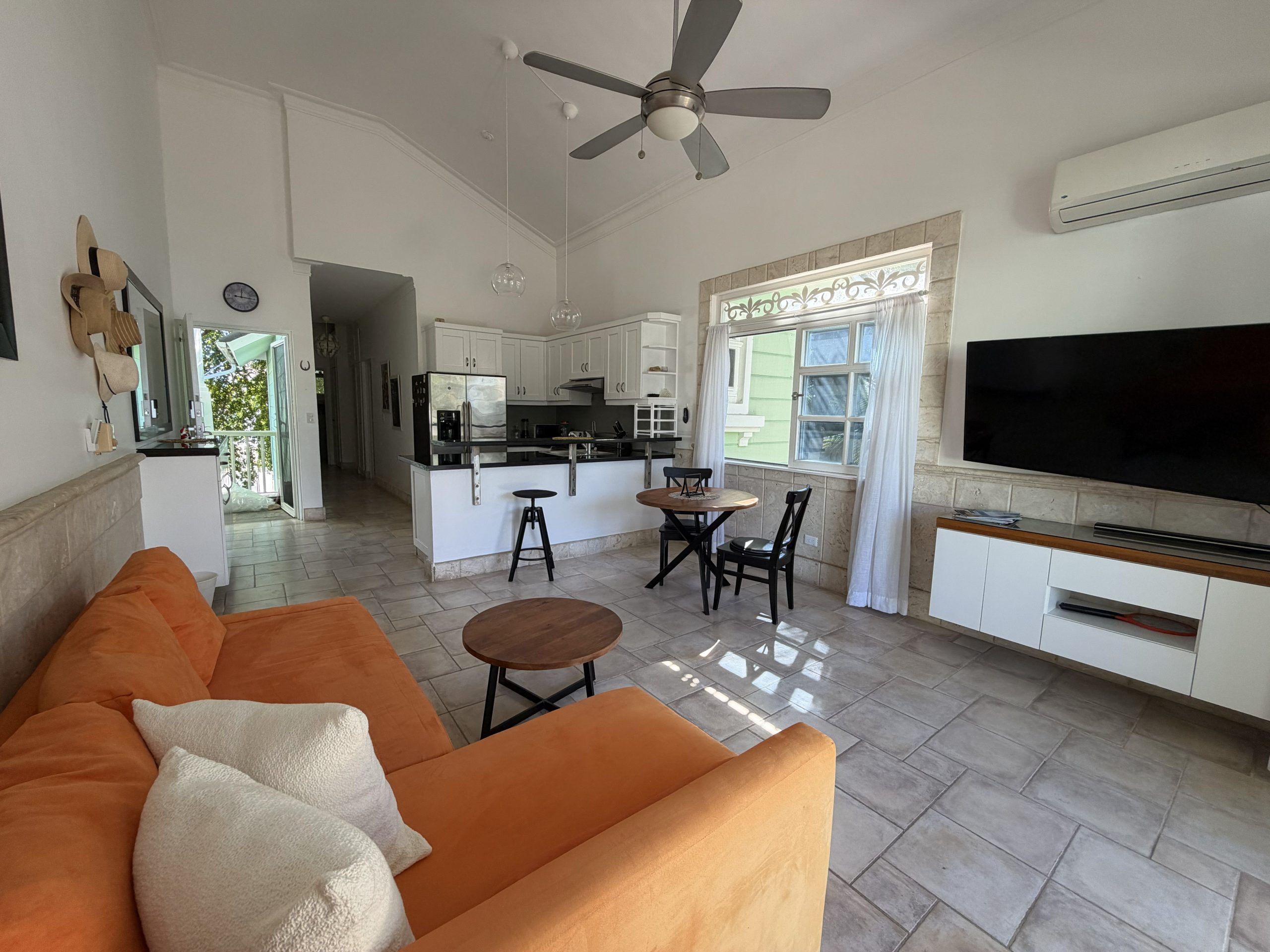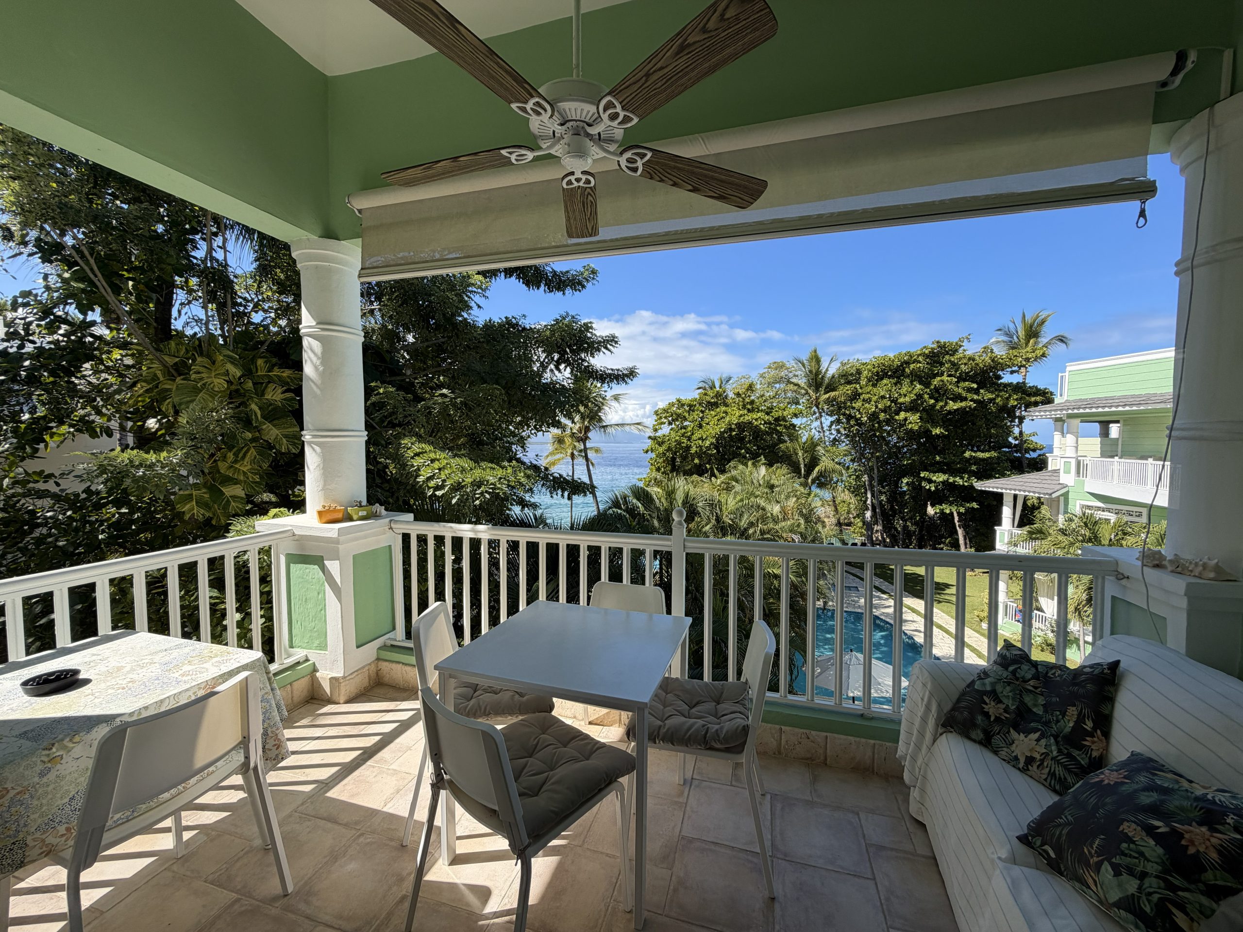 Featuring high ceilings, colonial-style architecture, and a bright open-concept layout, this Sosúa condo includes an American-style kitchen, dining area, and comfortable living room that flows onto a private terrace overlooking the ocean. It’s the ideal space for relaxing, entertaining, or enjoying the Caribbean breeze year-round.