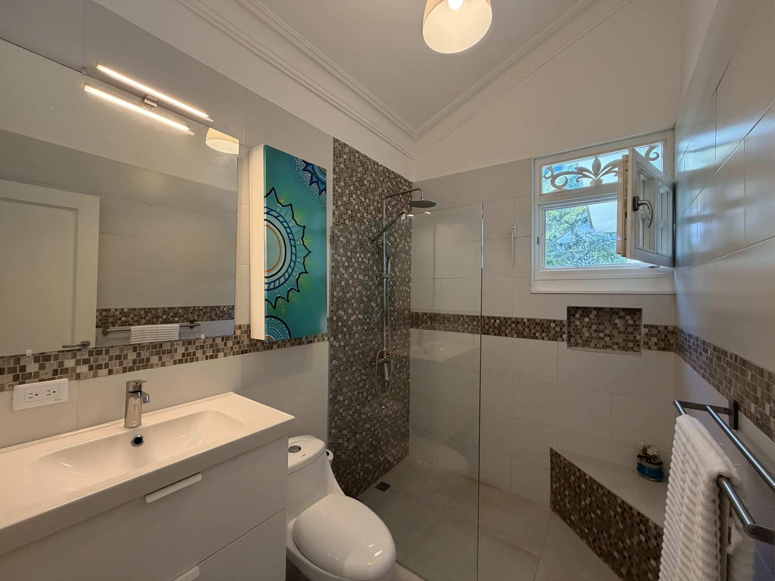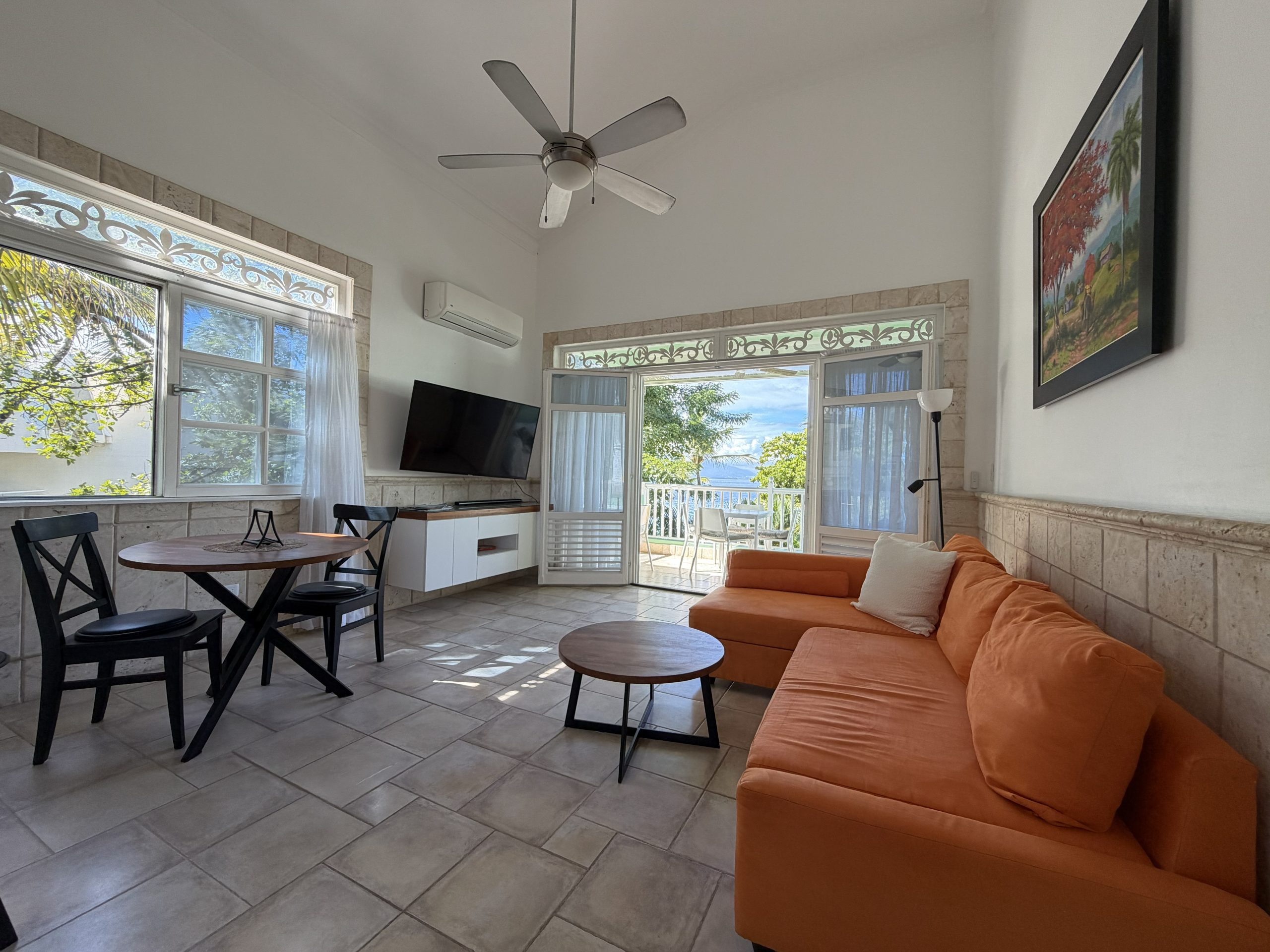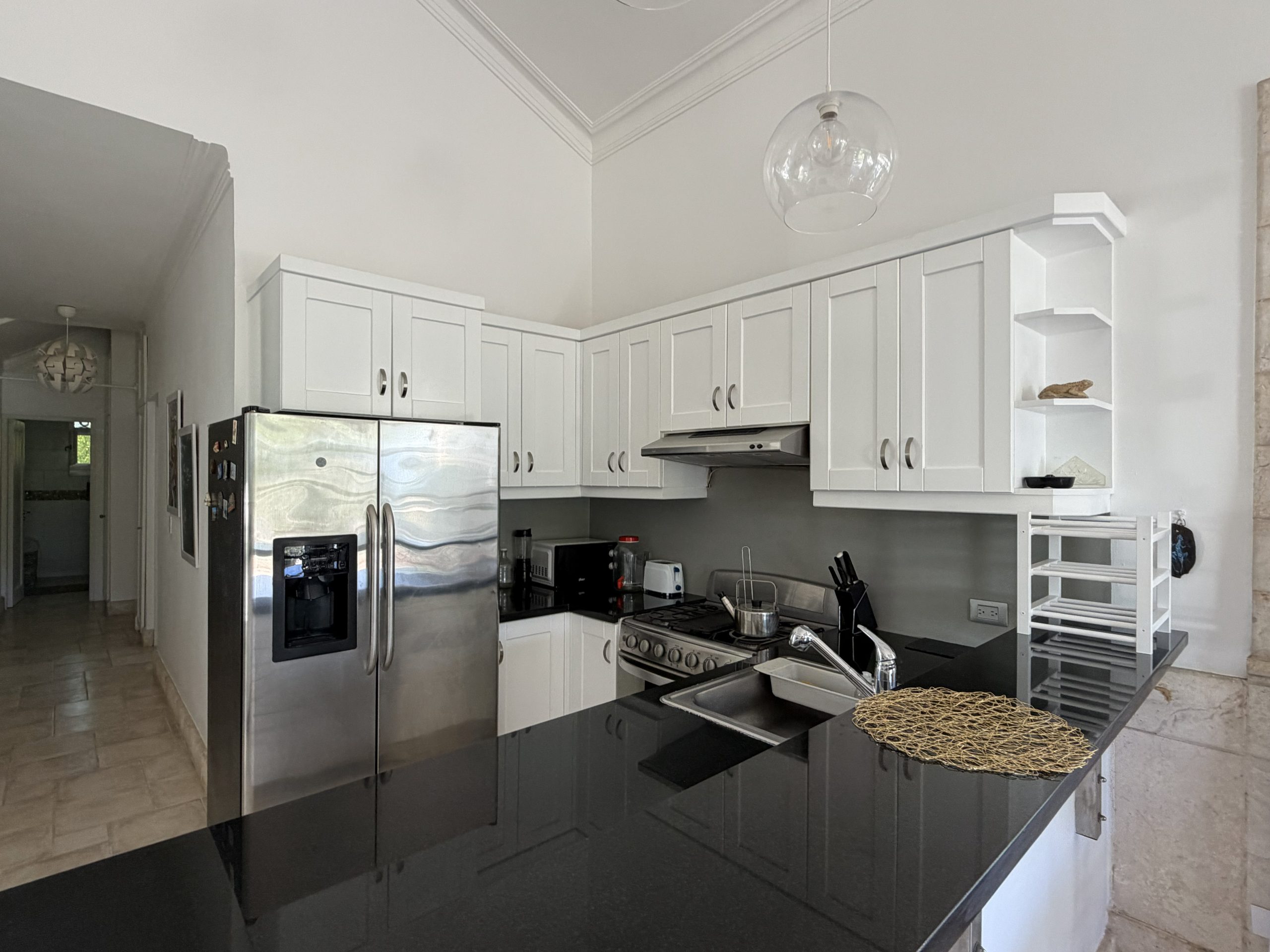 Featuring high ceilings, colonial-style architecture, and a bright open-concept layout, this Sosúa condo includes an American-style kitchen, dining area, and comfortable living room that flows onto a private terrace overlooking the ocean. It’s the ideal space for relaxing, entertaining, or enjoying the Caribbean breeze year-round.