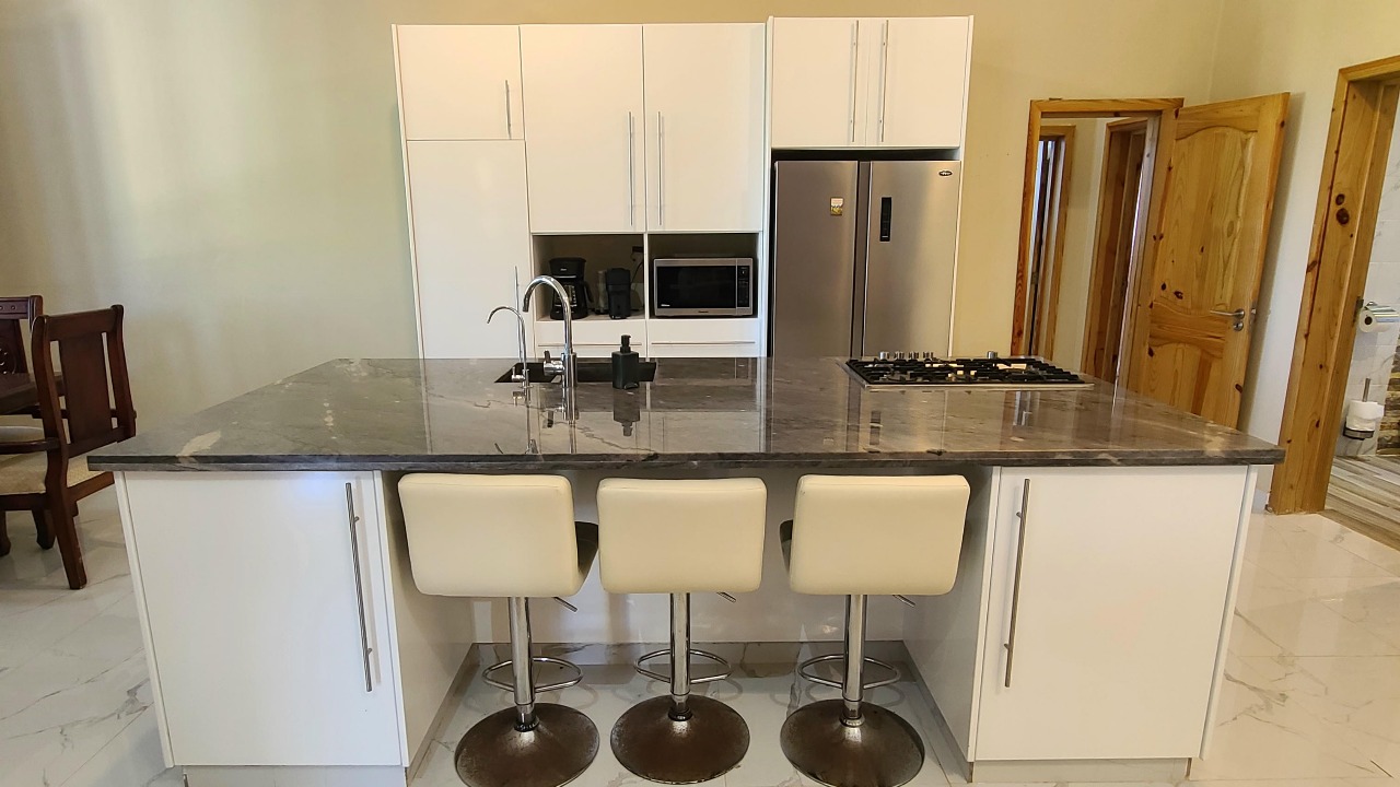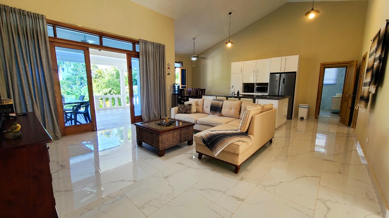 This contemporary Sosúa property, completed in 2020, seamlessly blends modern architecture with Caribbean appeal and is ready for immediate occupancy. Featuring generous living spaces, independent guest accommodations, and a garage-top studio, the home suits family residence, social gatherings, or income generation.
